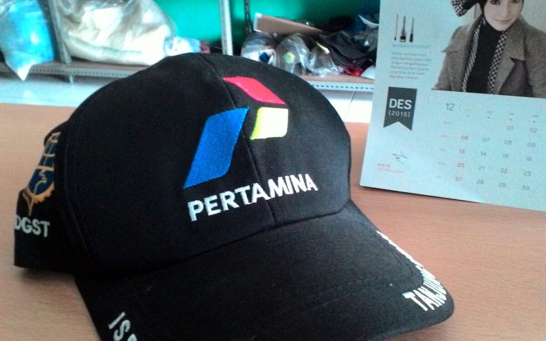 Topi ini salah satu topi yang pernah di buat dari kami dalam jumlah banyak menggunakan bahan drill serta bordir warna warni